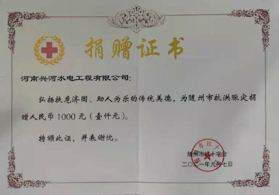 2021随州捐款证书